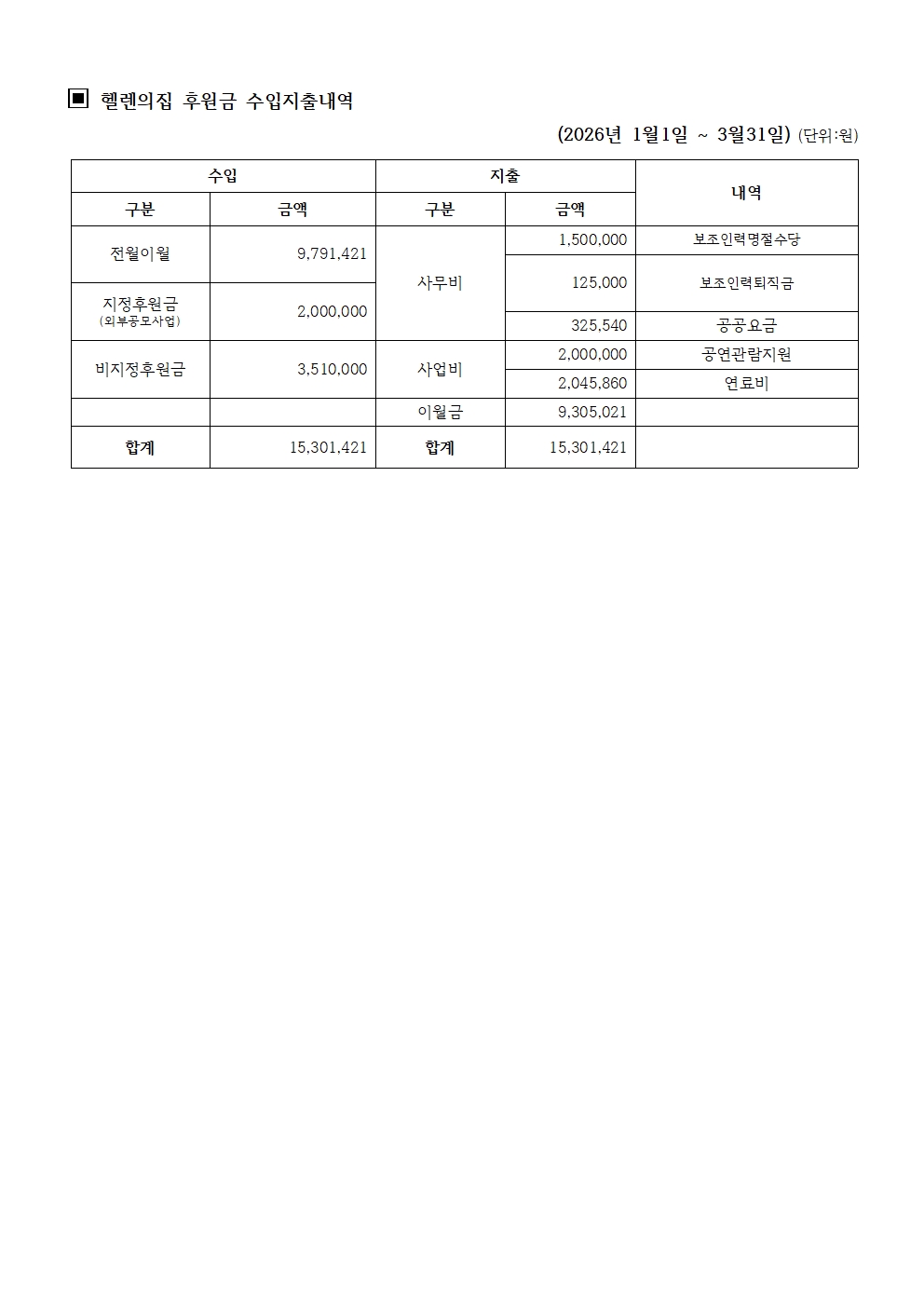 2026년 3월 헬렌의 집 소식지
