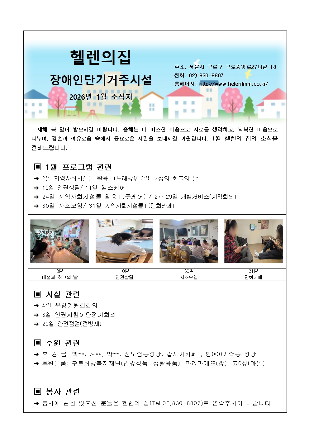 2026년 1월 헬렌의 집 소식지